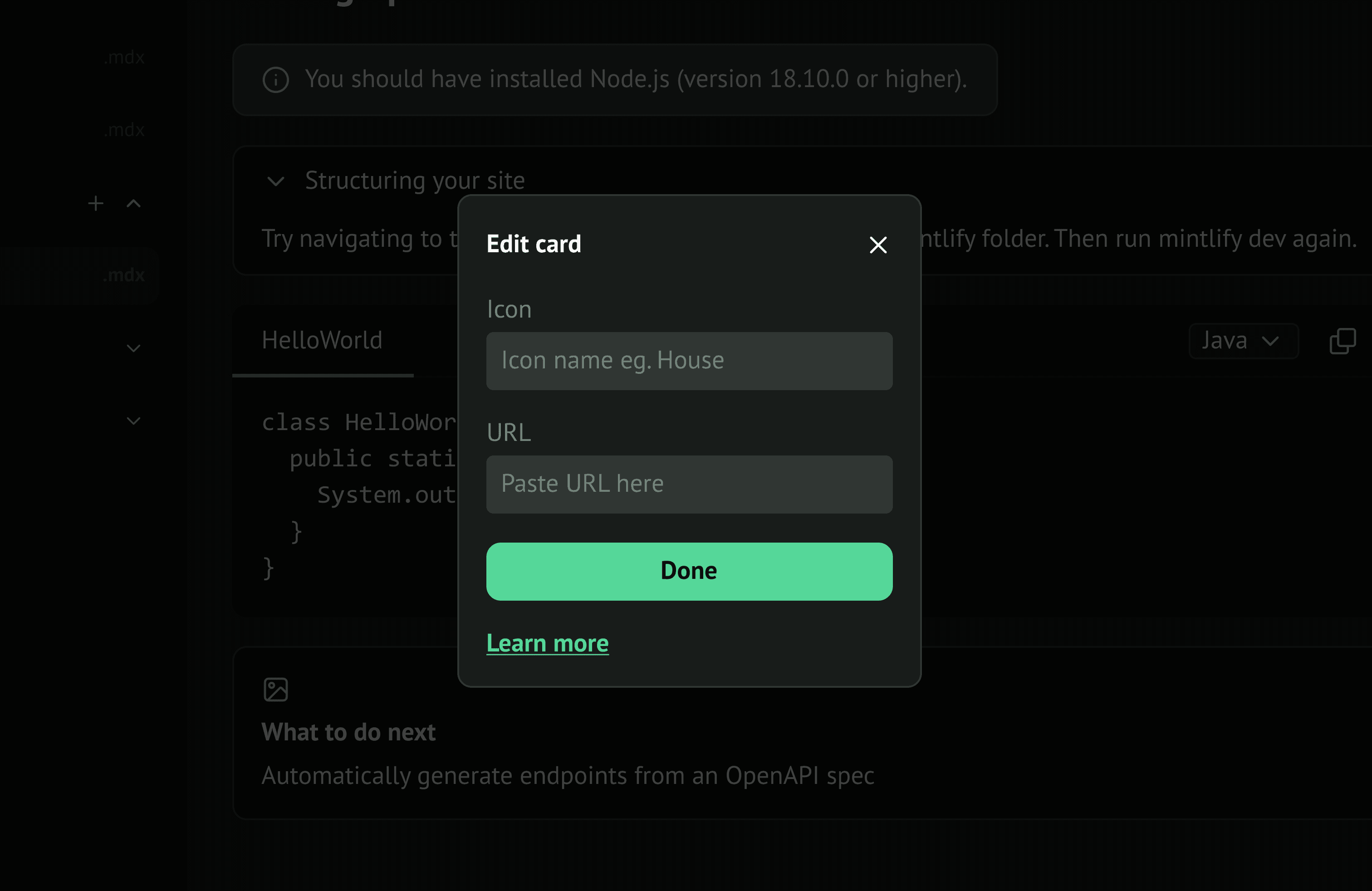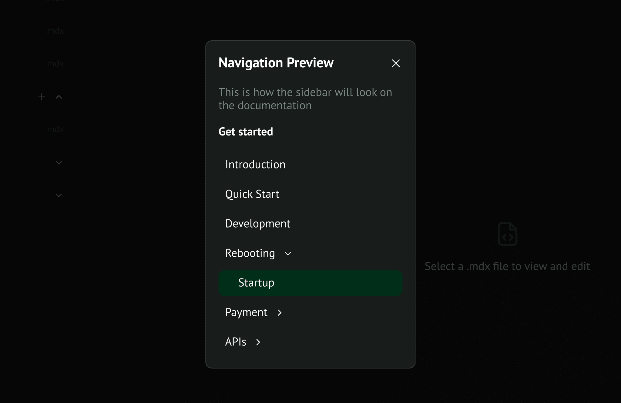 Although not within the scope of this case study, Lily still has full access to the Mint.json file. She can choose to make her edits there. You can liken the above to a visual representation of the mint.json navigation section.