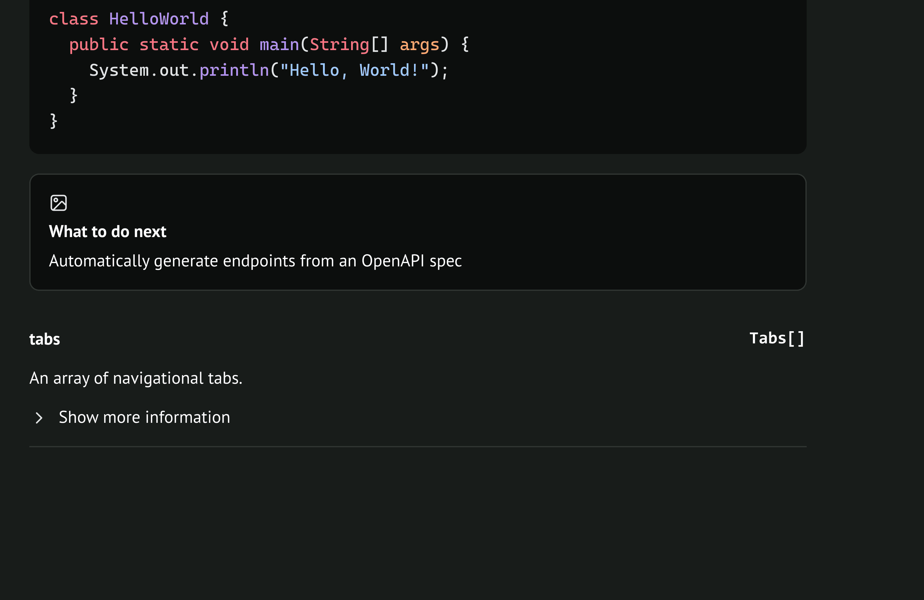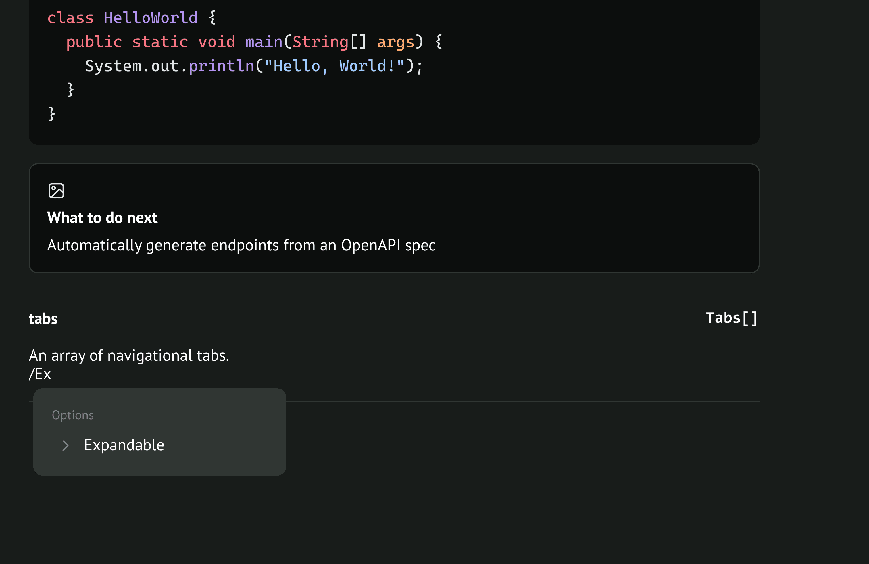 When she navigates to the tab section, Lily can see how the tabs will show up on the documentation website.