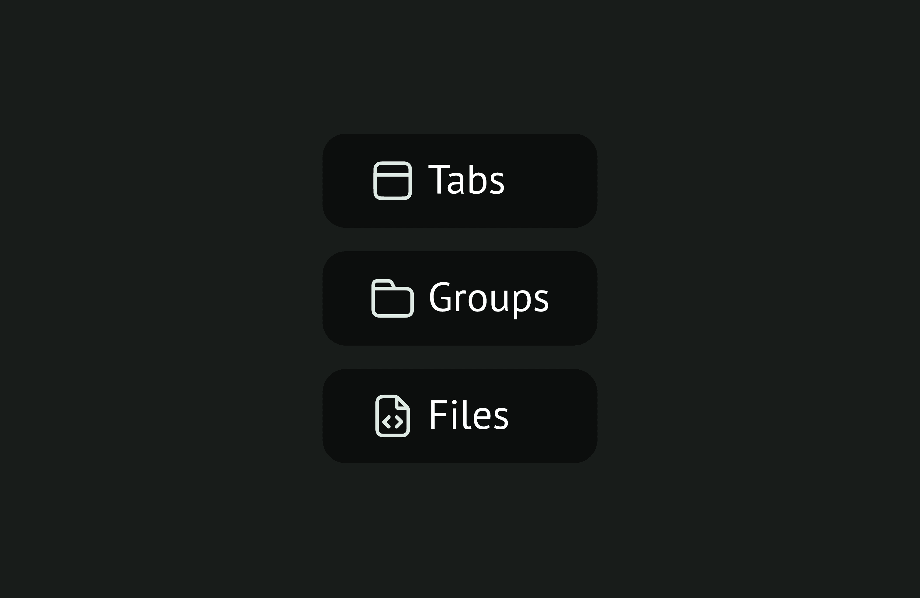 Icons for various sections are distinct. This is so Lily can easily differentiate between them. Tabs, Groups, and Files respectively.